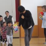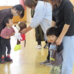 今回は、ありんこ教室です。親子体操と運動会ごっこを行いました。