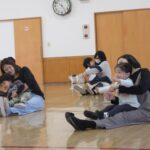 「ごー!ごー!」親子バスは、元気に、楽しく進みます。体育館は大盛り上がりです。