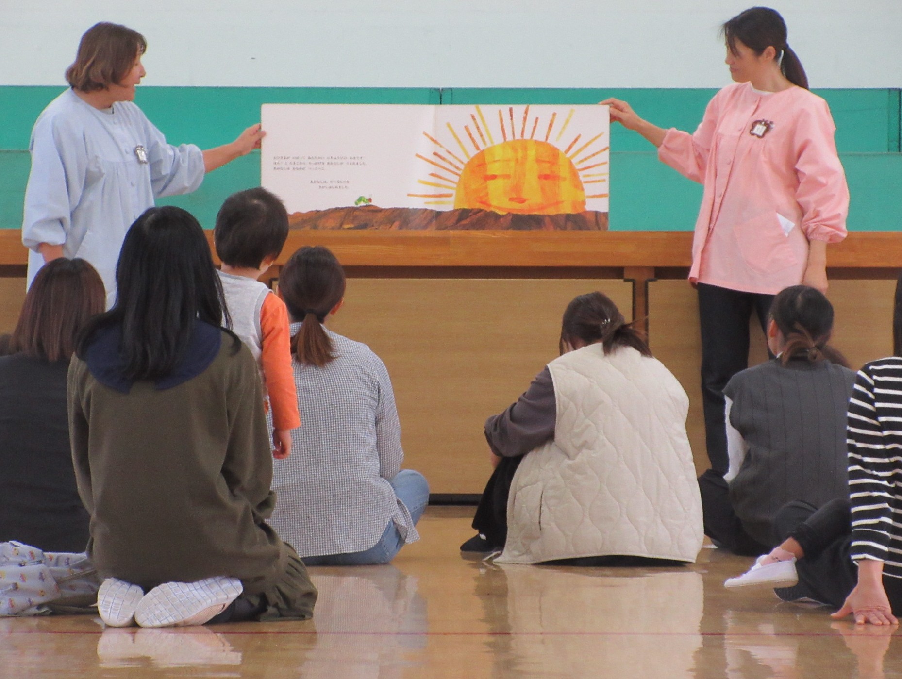 最後は大型絵本の読み聞かせです。みんな、しっとりと聞き入っていました。お話が好きなのですね。